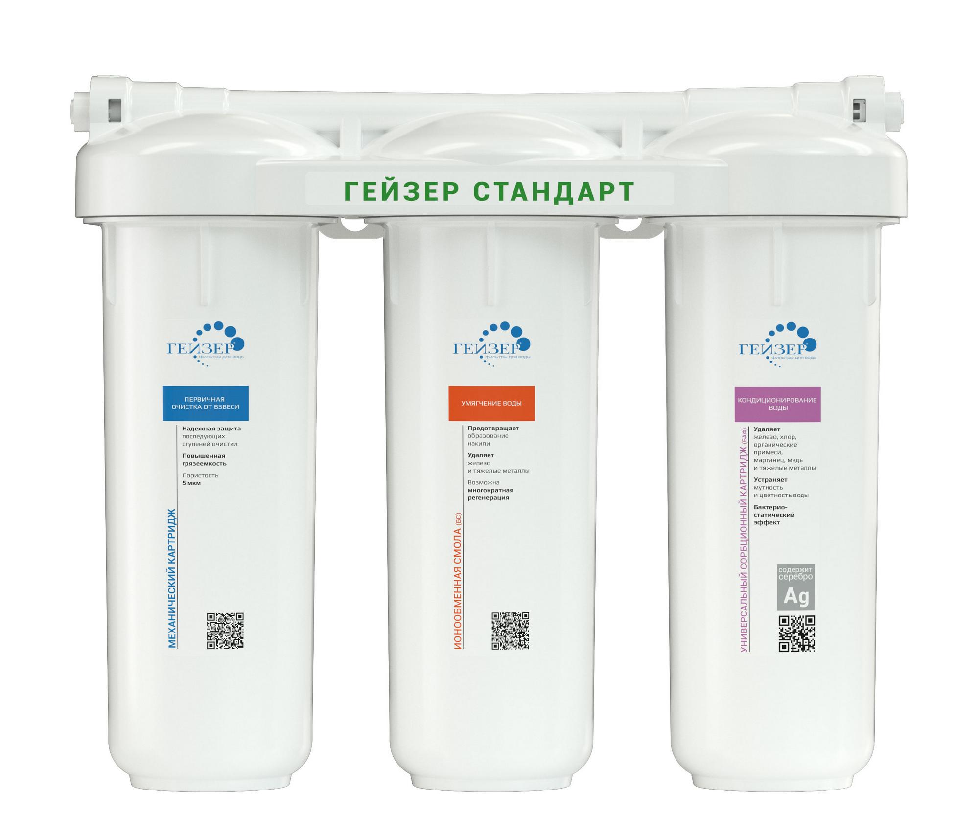 Фильтр Гейзер Стандарт специально разработан для регионов с жесткой водой (средний уровень минерализации).
